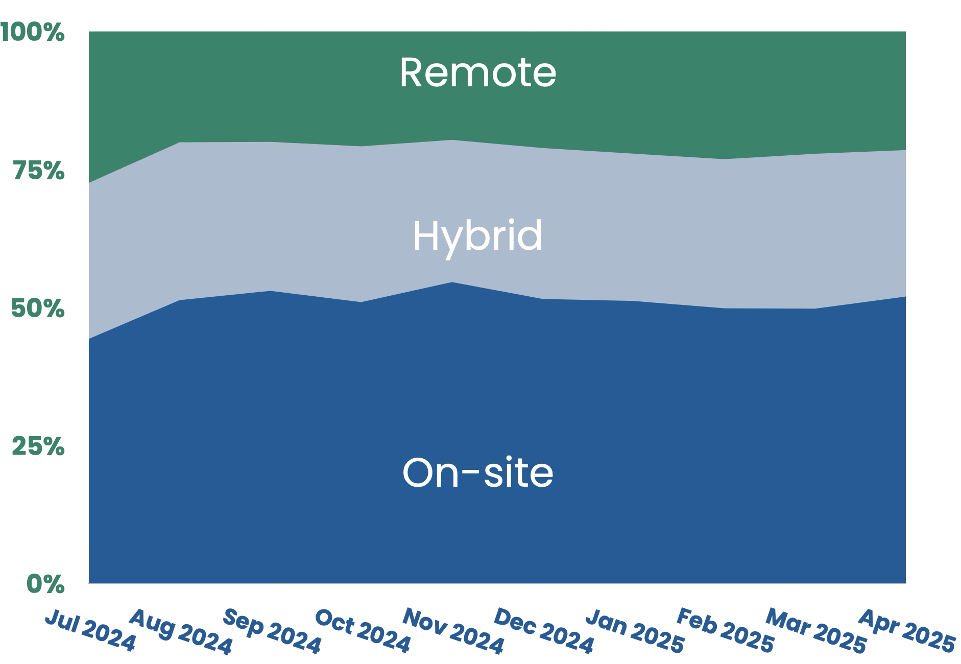 With nearly a year of data on this, and being about 2 years post-COVID, there are no signs that PM jobs are headed for pre-pandemic on-site levels.