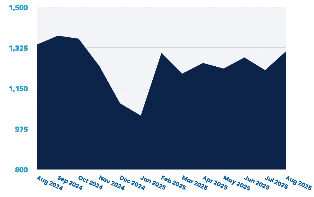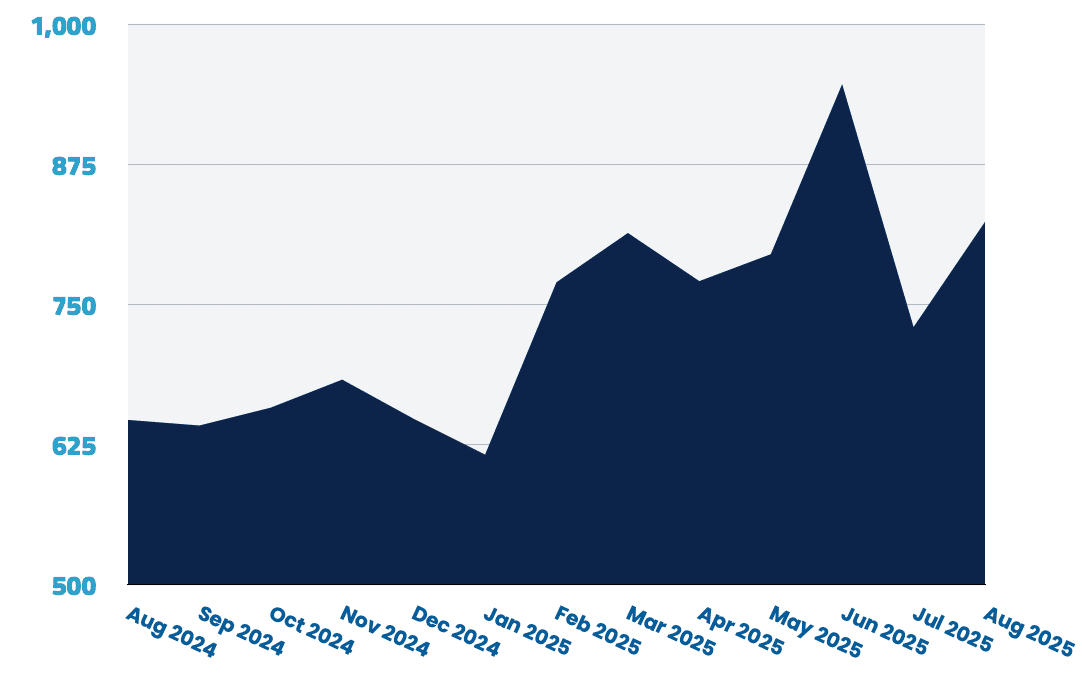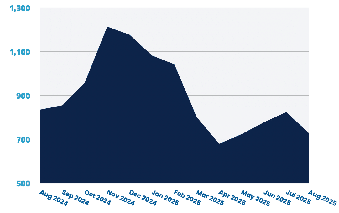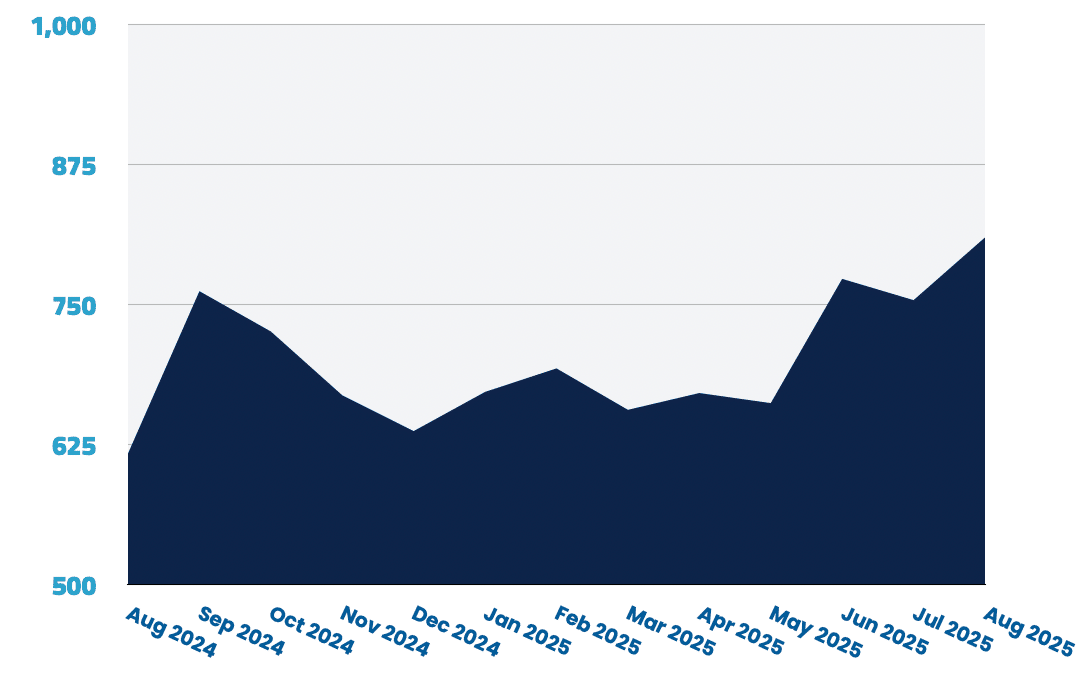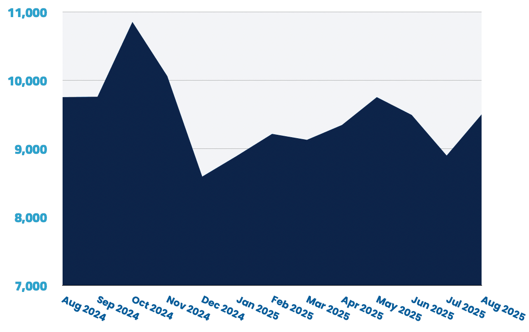 Remote roles rose 0.7% month-over-month following July’s 24% decline, but remain well below their earlier 2025 highs.
