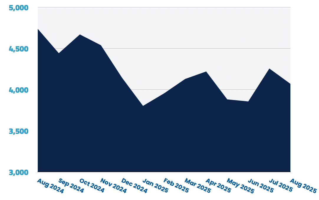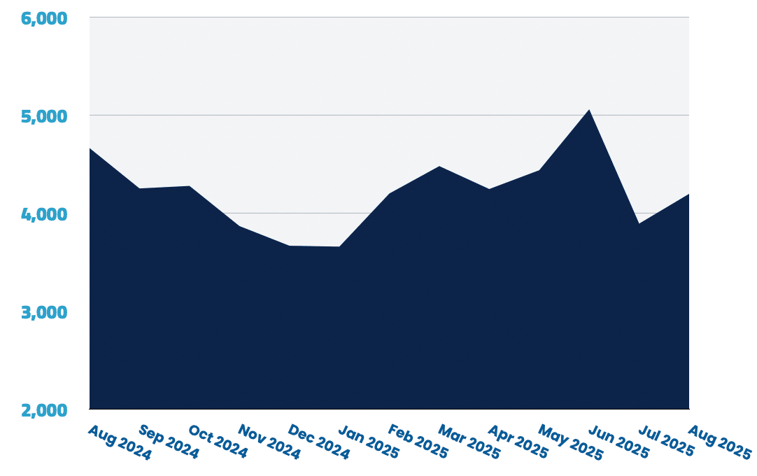 With 21,855 open listings, the PM Job Market is showing mixed signals with a 0.7% increase from July. The US market remains dominant and returned to growth this month, while the Middle East posted the fastest gains. LATAM saw a sharp drop, and APAC experienced a small pullback after recent strong growth.