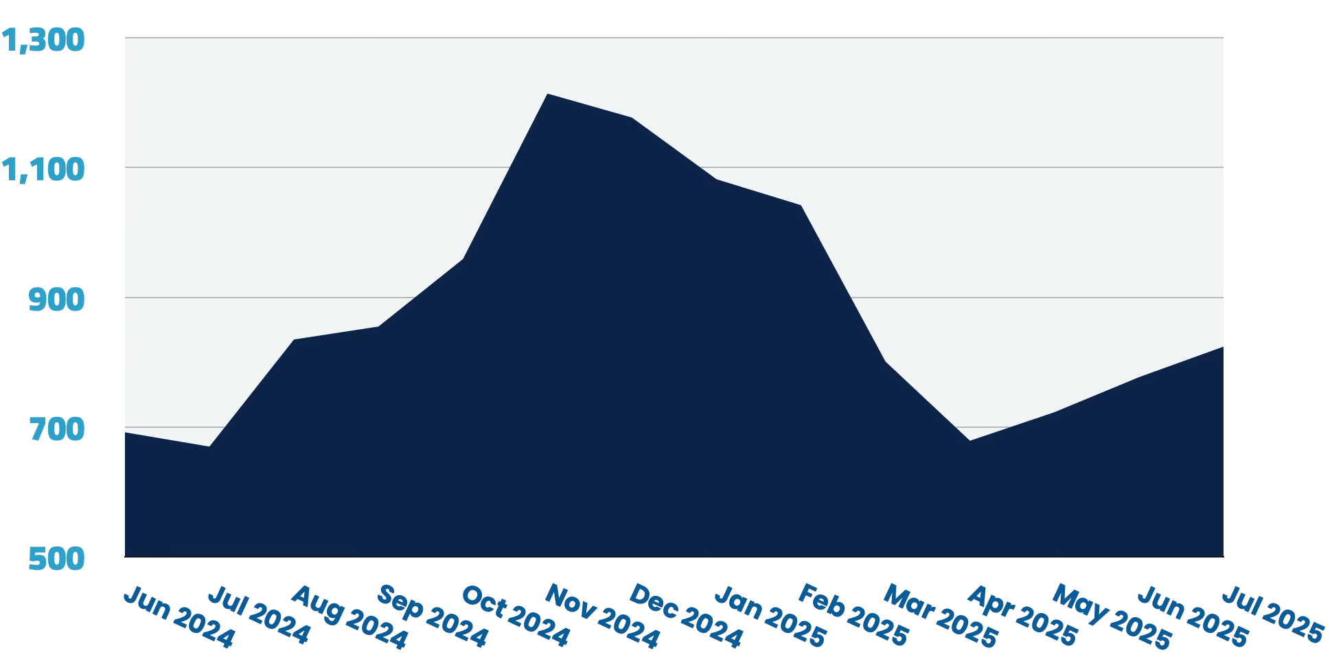 The UK market presents a mixed picture with 1,228 PM jobs. While there’s a modest 4.3% month-over-month decline (55 fewer positions), there is stability in the market since February. The 12% year-over-year decline suggests the UK isn’t on pace for growth. For UK-based product managers, patience and persistence will be key as this market continues to stabilise.