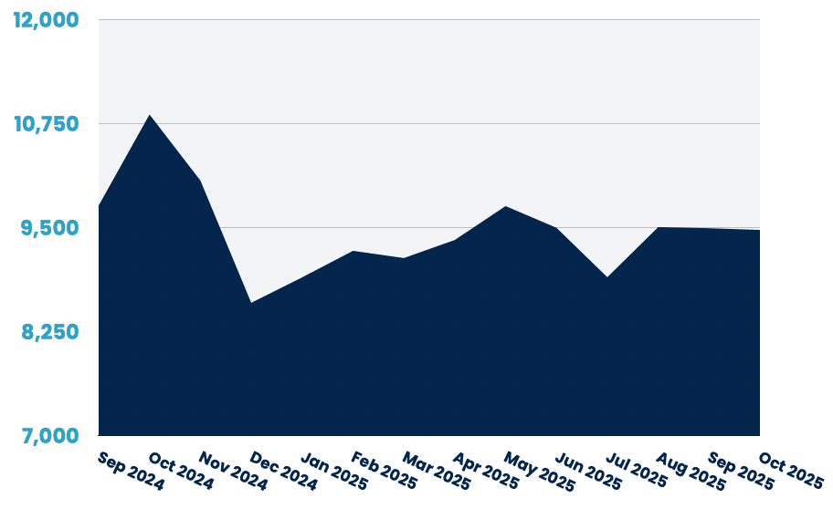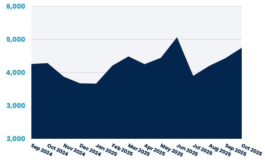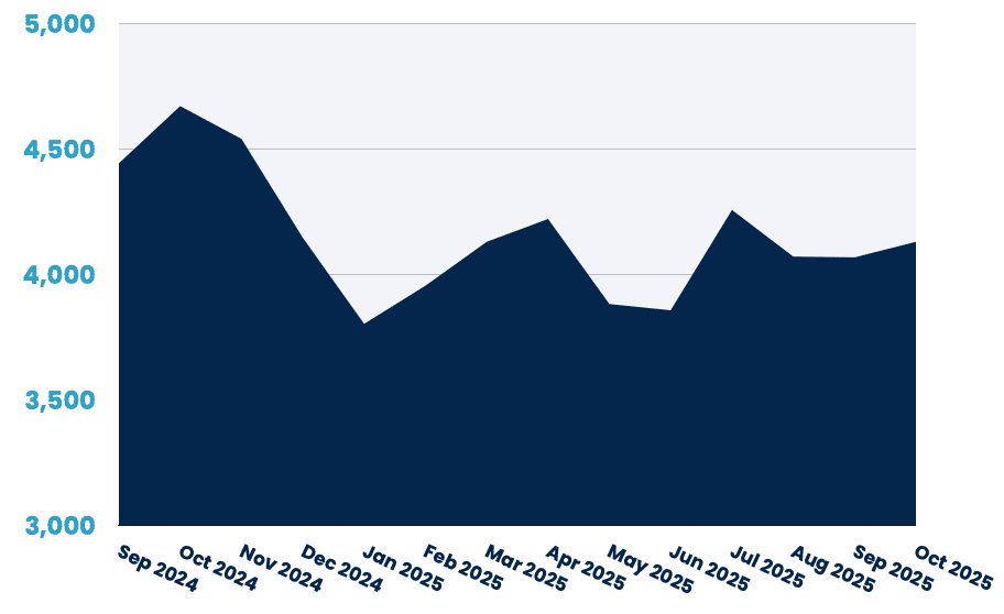 APAC reached 4,129 jobs (+1.5%), a welcome reversal after September's flat performance. Associate roles surged 18%, but senior positions fell 4.7% and leadership dropped sharply (–13%).