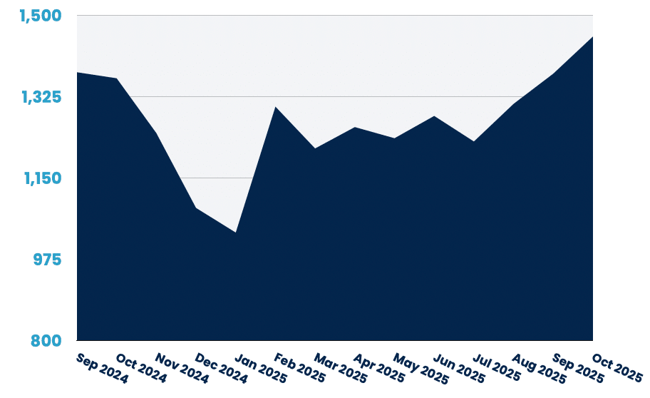 Remote opportunities more than doubled (+122%), reversing September's 14% decline. The volatility in this market creates significant opportunities for those monitoring it closely.